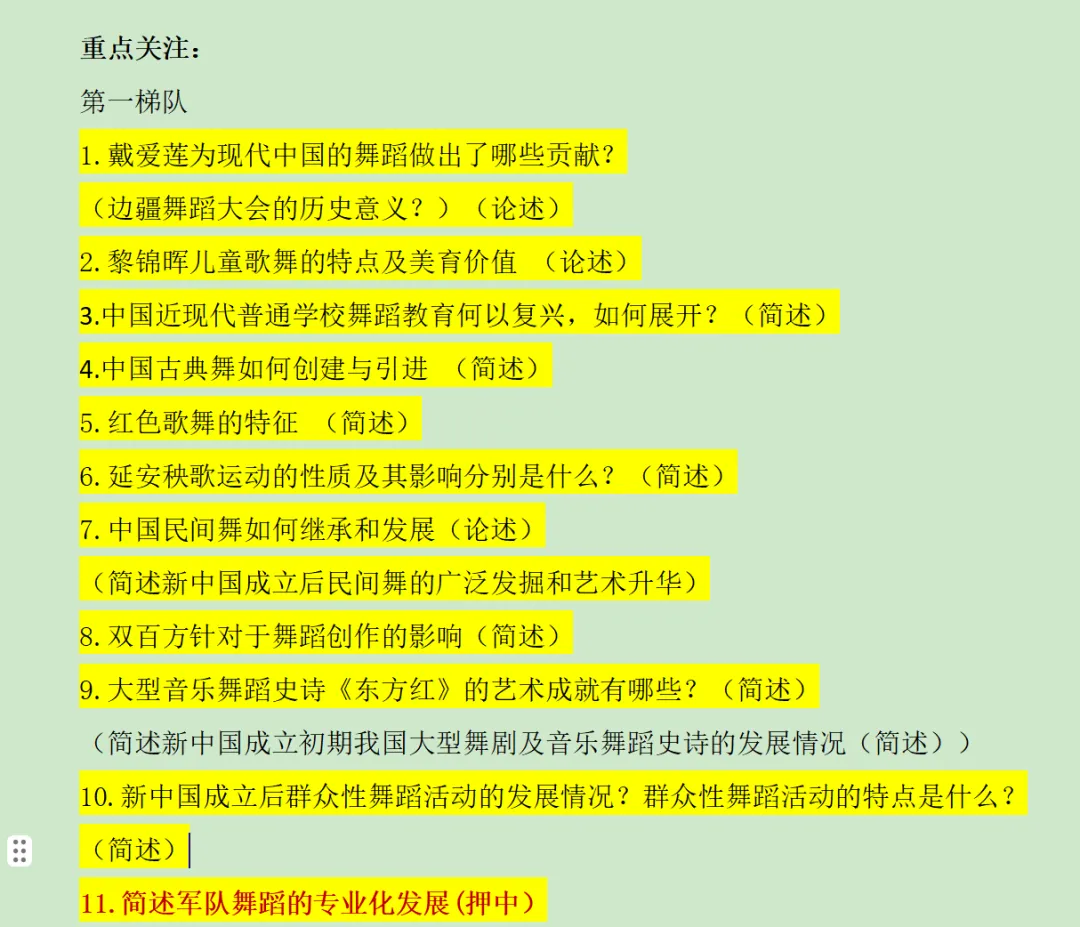 中高频考点,该考点侧重考查考生对新中国成立后军队舞蹈的创作题材,以及风格特色当代分类,内容难度不大,是考生在日常复习中会常见的章节核心考点之一,作答时需要考生从多方面进行系统的论证,就一级核心标题进行适当的拆解和说明,以形成具体的逻辑连接。