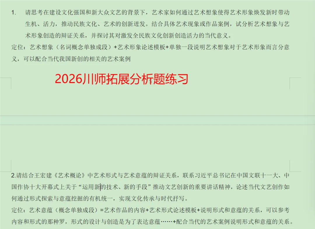 2026川师艺术概论三模测试卷;四川师范大学2026研究生考试预测材料(押题材料)第一章第一梯队重点考试内容。