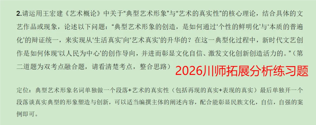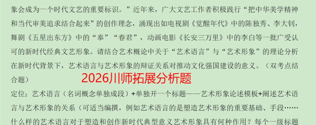 四川师范大学2026研究生考试预测材料(押题材料)第三章第一梯队部分考试内容;2026川师艺术概论二模测试;2026年四川师范大学院校特色讲义;年度论述材料、文艺热点时政话题材料预测内容。