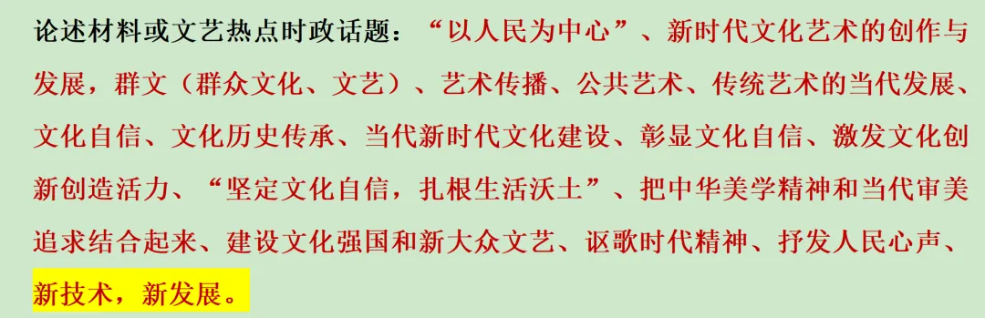 基础高频考点,然结合材料后,比较考验考生对材料的一定辨识和判断,需要根据材料进行判断,除了考查考生的知识与知识的交叉、迁移能力等以外,还旨在考查考生结合时事热点与艺术案例的综合写作的能力。