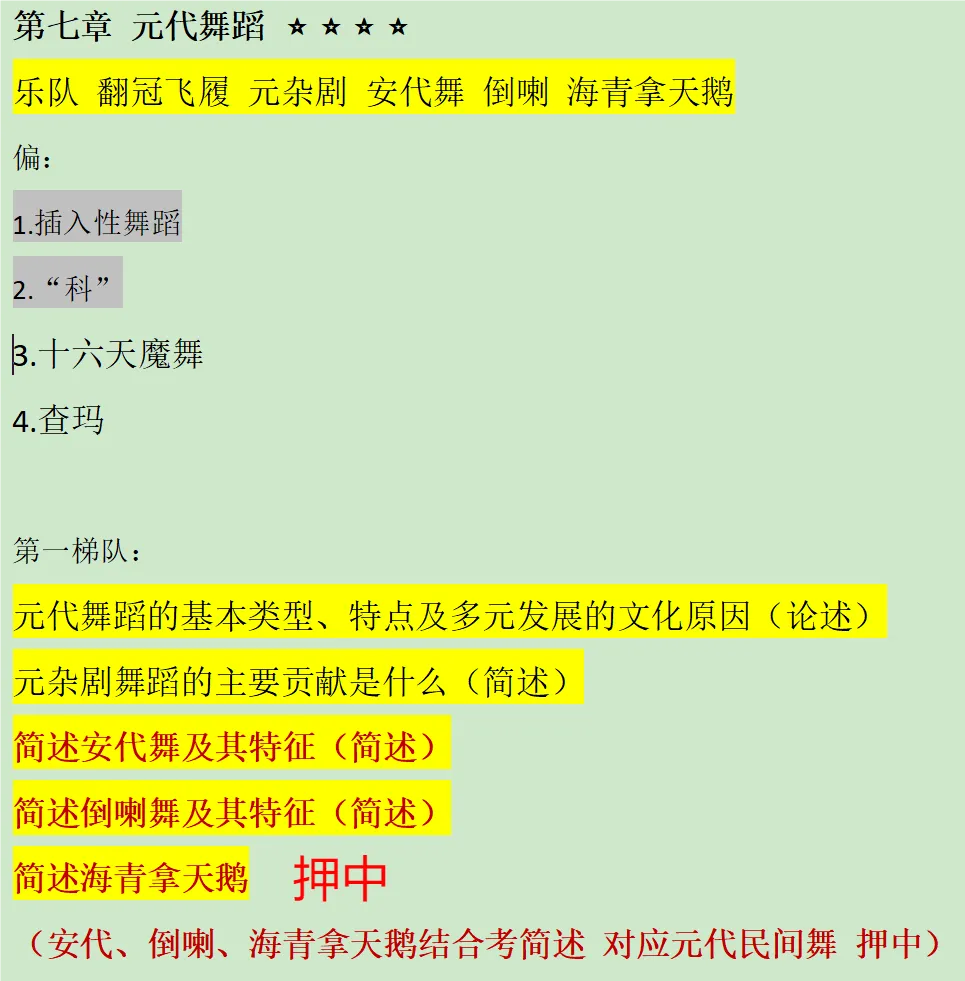 四川师范大学2026研究生考试预测材料(押题材料)第七章 元代舞蹈第一梯队重点考试内容;2026川师舞蹈史答题序列讲解材料内容。