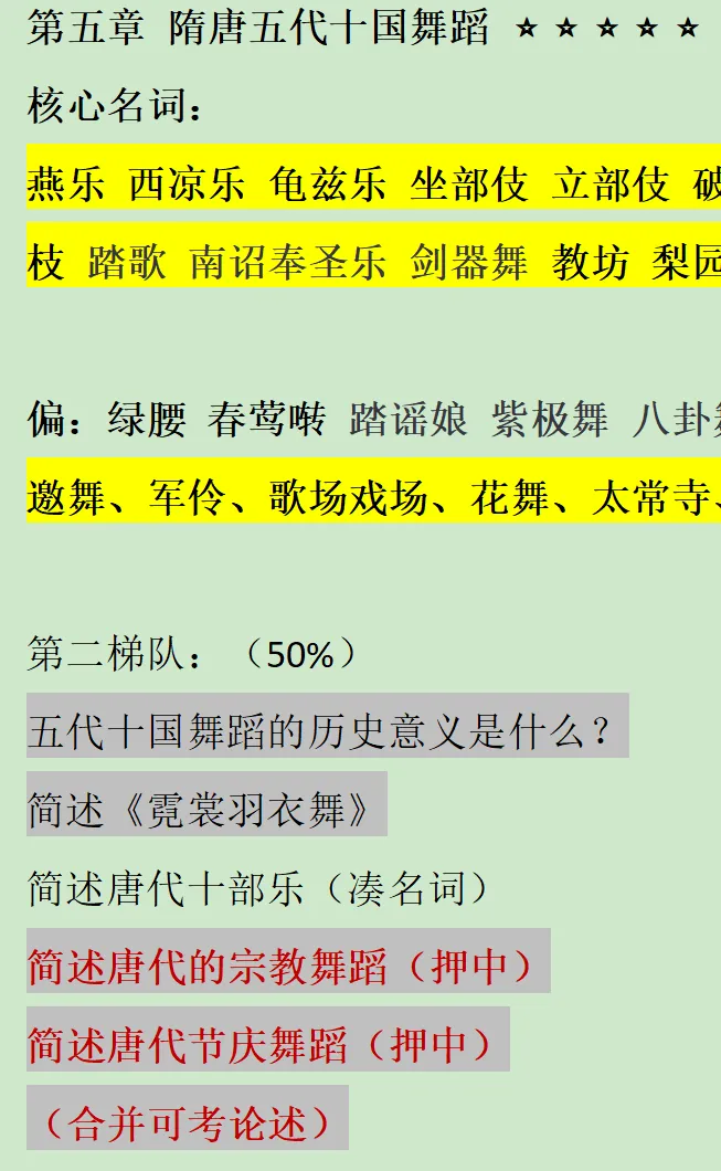 中国舞蹈史马工程 第五章隋唐五代十国舞蹈 唐代的宗教舞蹈与节庆歌舞部分考点。