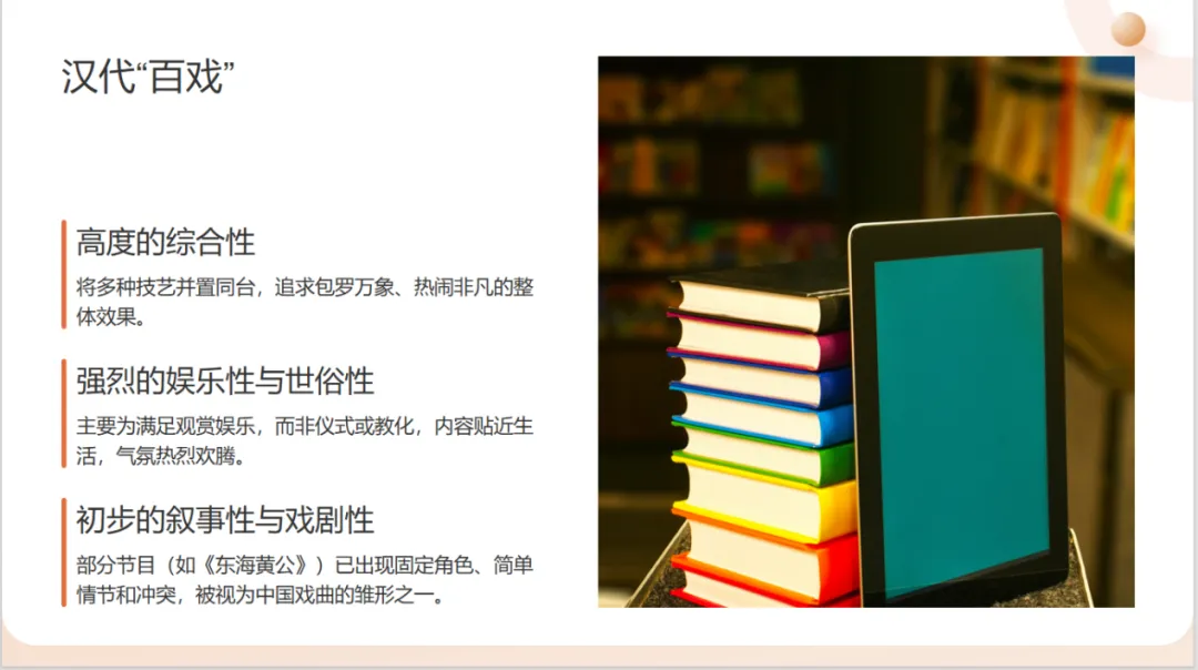 4. 初步的叙事性与戏剧性:部分节目(如《东海黄公》)已出现固定角色、简单情节和冲突,被视为中国戏曲的雏形之一。