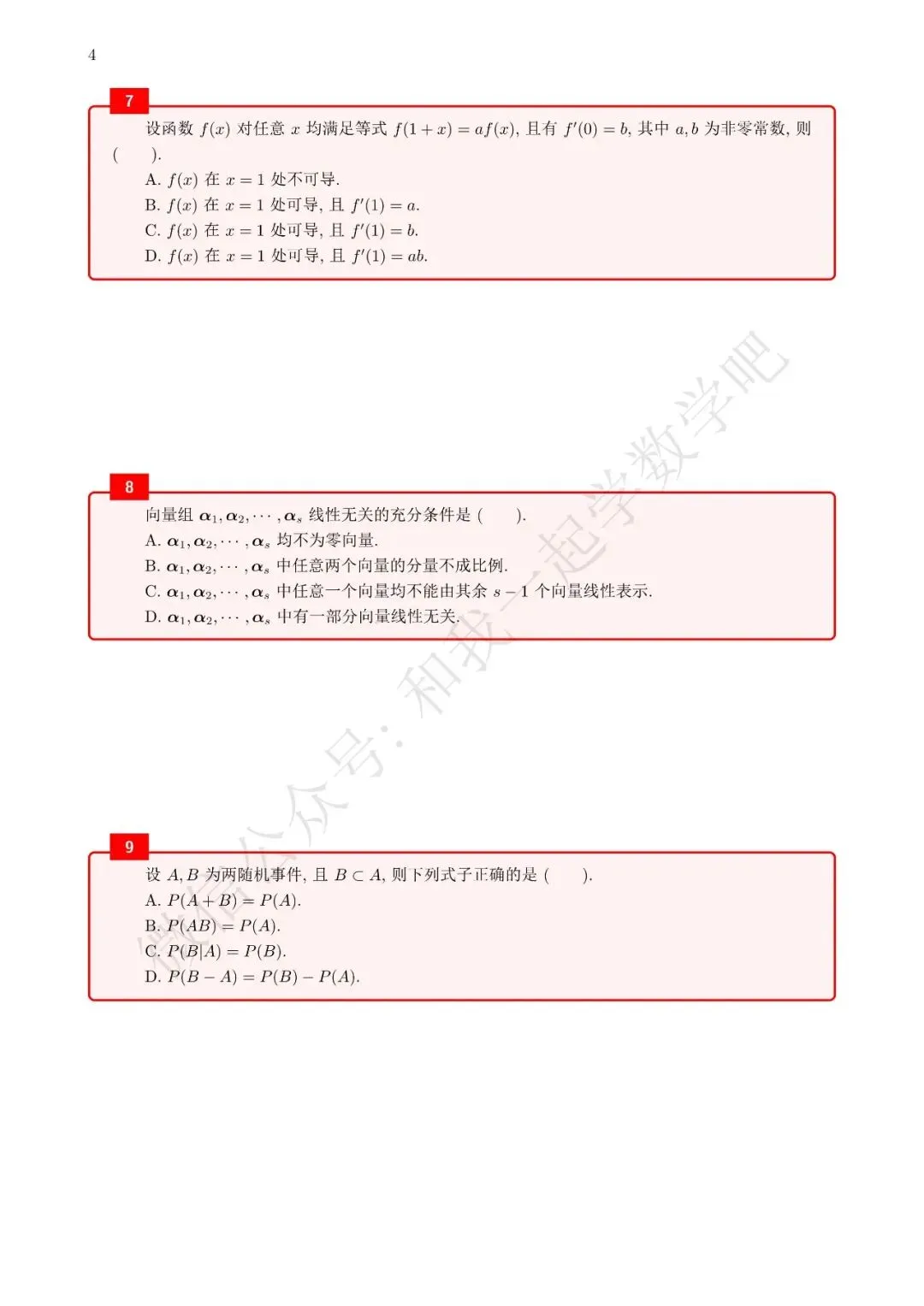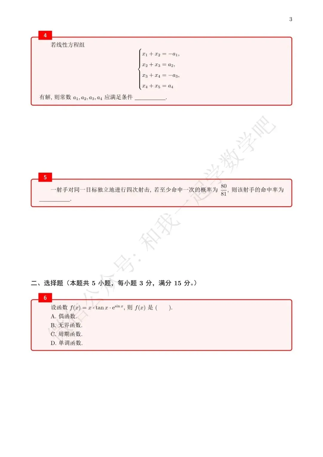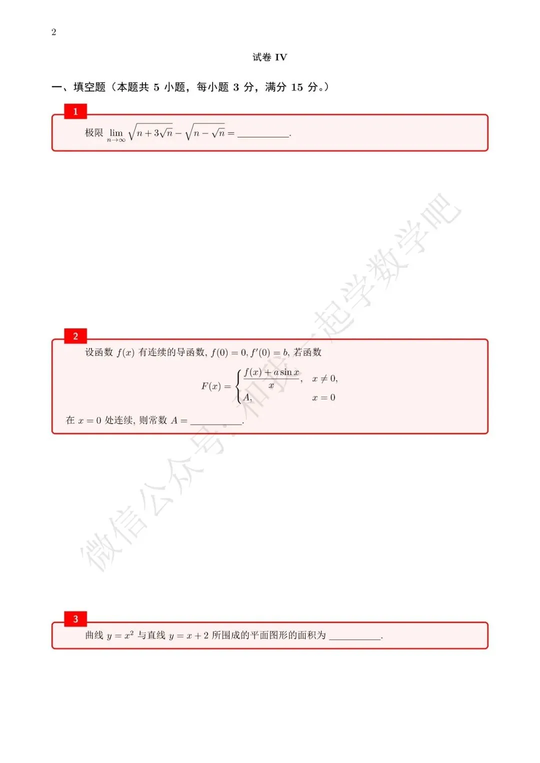 为了方便各位小伙伴们刷题,我重新排版了90年数三的真题,在每道题下面都增加了空白,方便大家写答案,记录相关知识点。以下是图片,完整版pdf文件后台回复"90考研数三"免费领取。
