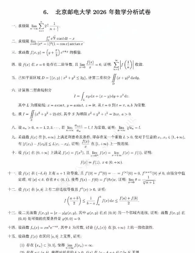 >2026年北京邮电大学数学分析考研真题