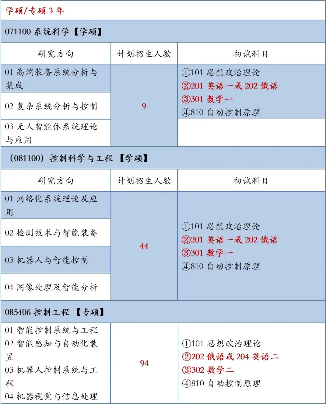 自动化学院招收专业不变,仍为系统工程、控制学硕、控制专硕三个专业。
