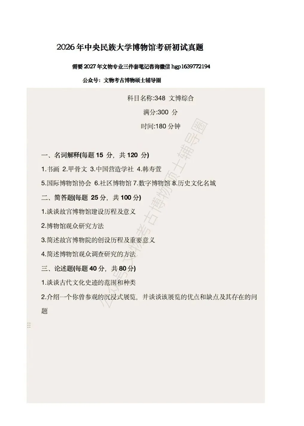 第四集2026年中央民族大学博物馆考研真题答案讲解视频