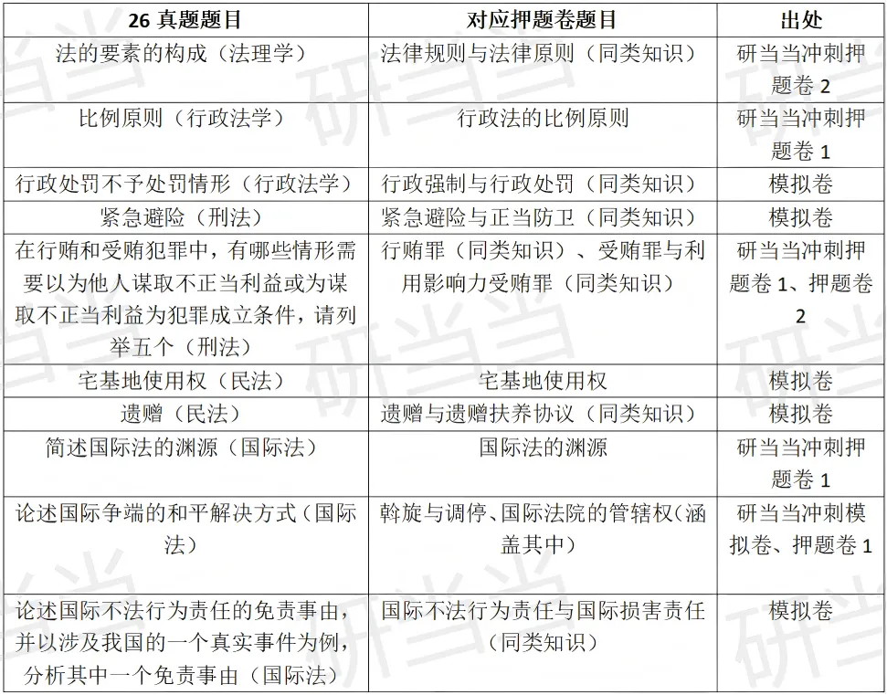 以下为模拟卷、押题卷中,与26年真题高度吻合或高度相关的题目对比: