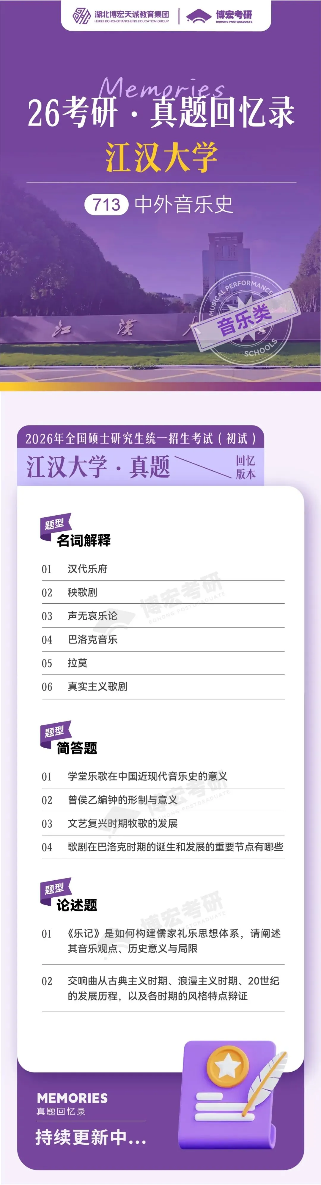 26考研·真题回忆录|江汉大学|713中外音乐史