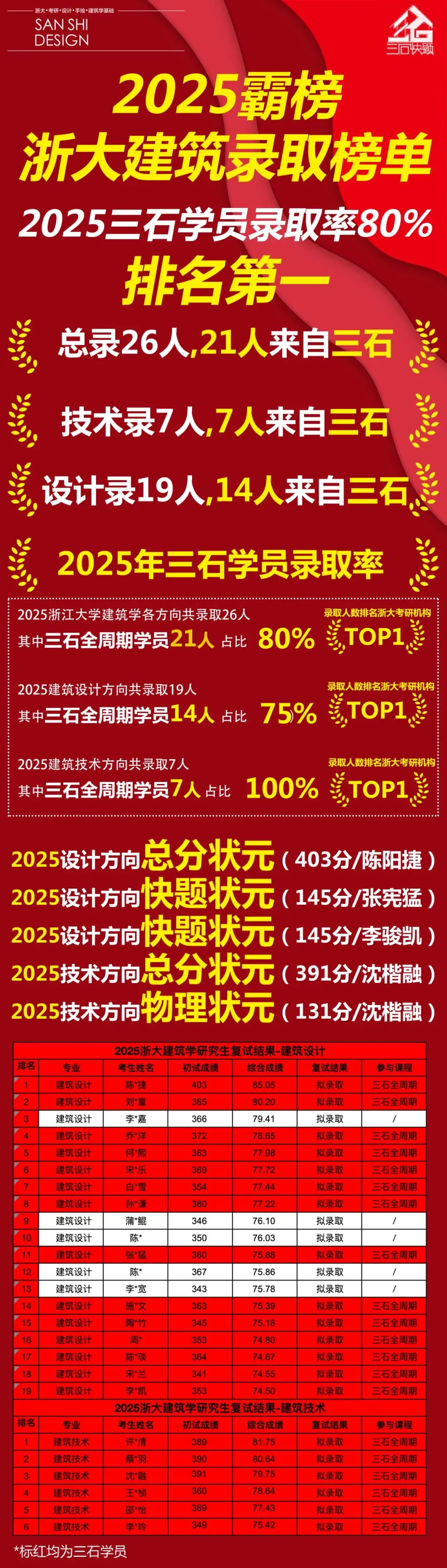 历年浙大建筑学研究生三石状元榜
