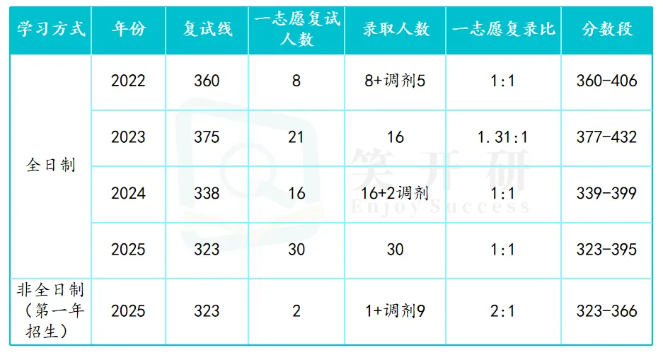 一志愿进复试最高分357分,最低分323分,平均340分;