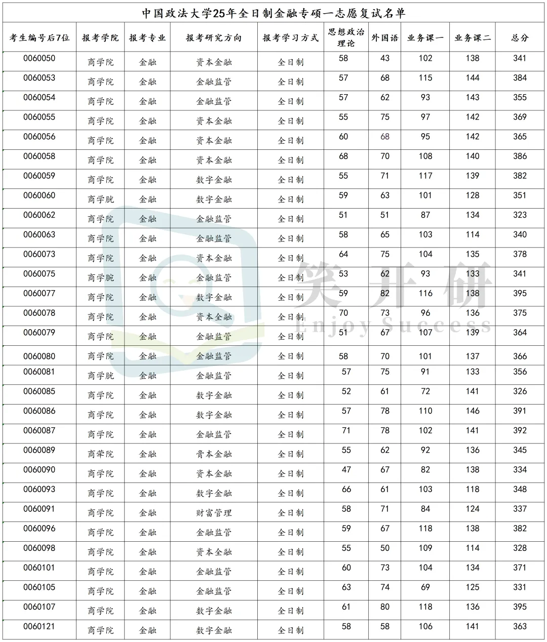①一志愿考生进入复试30人,最高分395分,最低分322分,平均分360.47分;