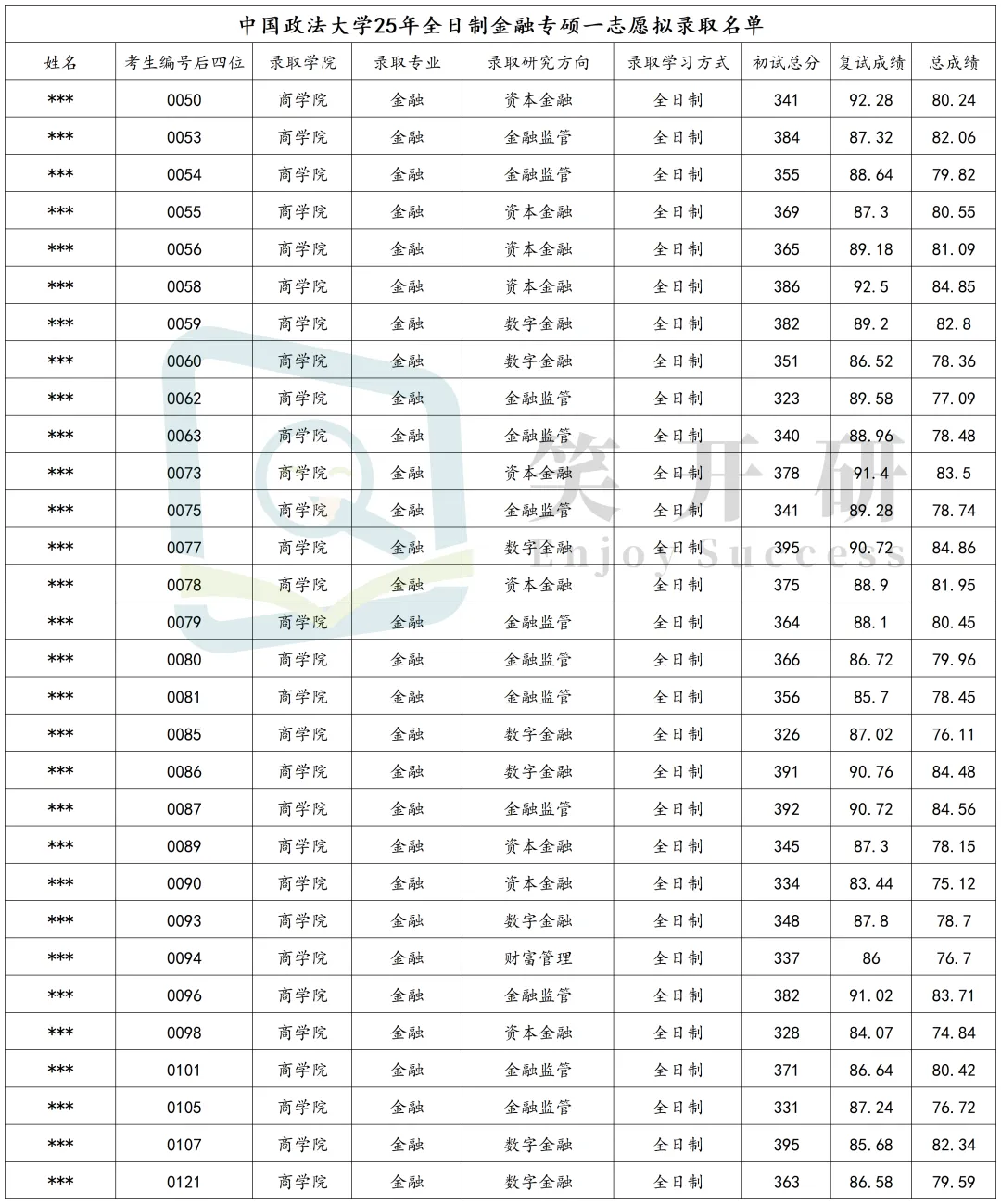 注:非全日制拟录取名单中含一志愿1人(323分),调剂9人