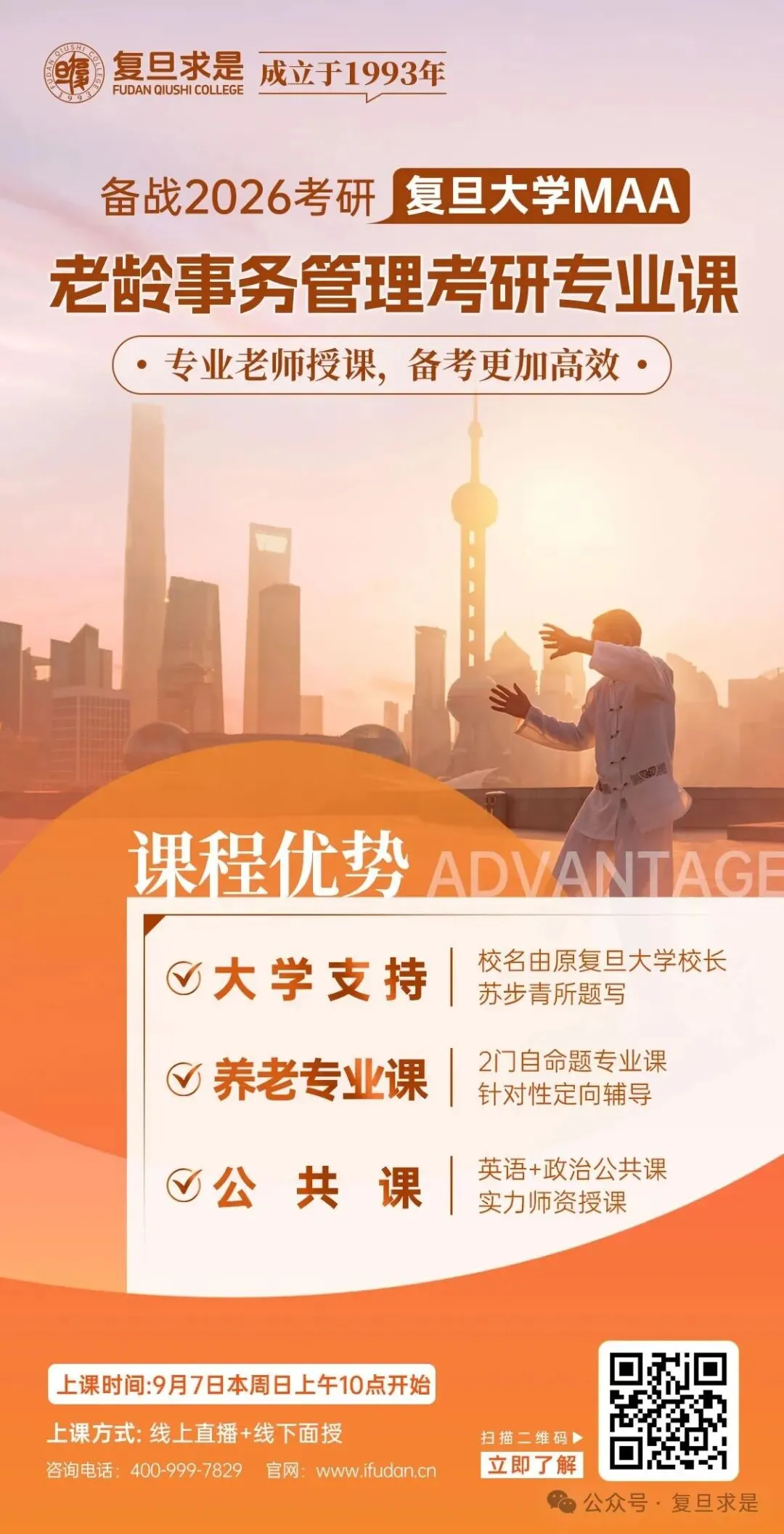 2026考研的备考已经开始了吗 ,是不是觉得复旦MAA专业课参考用书有点多,无从下手,亦或政治、英语公共课基础薄弱知识点遗忘比较多呢。为帮助大家顺利上岸,复旦求是针对2026复旦MAA老龄事务管理硕士考研全程班已经开始啦,有需要的同学欢迎咨询!