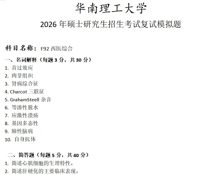 当前位置:首页>考研真题>华南理工大学F92西医综合考研复试真题模拟