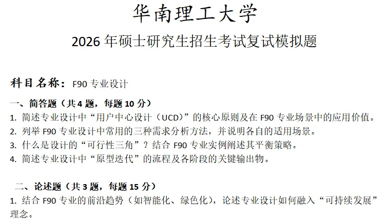 当前位置:首页>考研真题>华南理工大学F90专业设计考研复试真题模拟