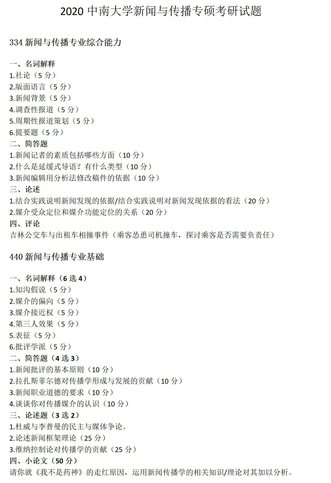 中南大学新闻与传播2007-2025历年考研真题已整理好,可直接获取!