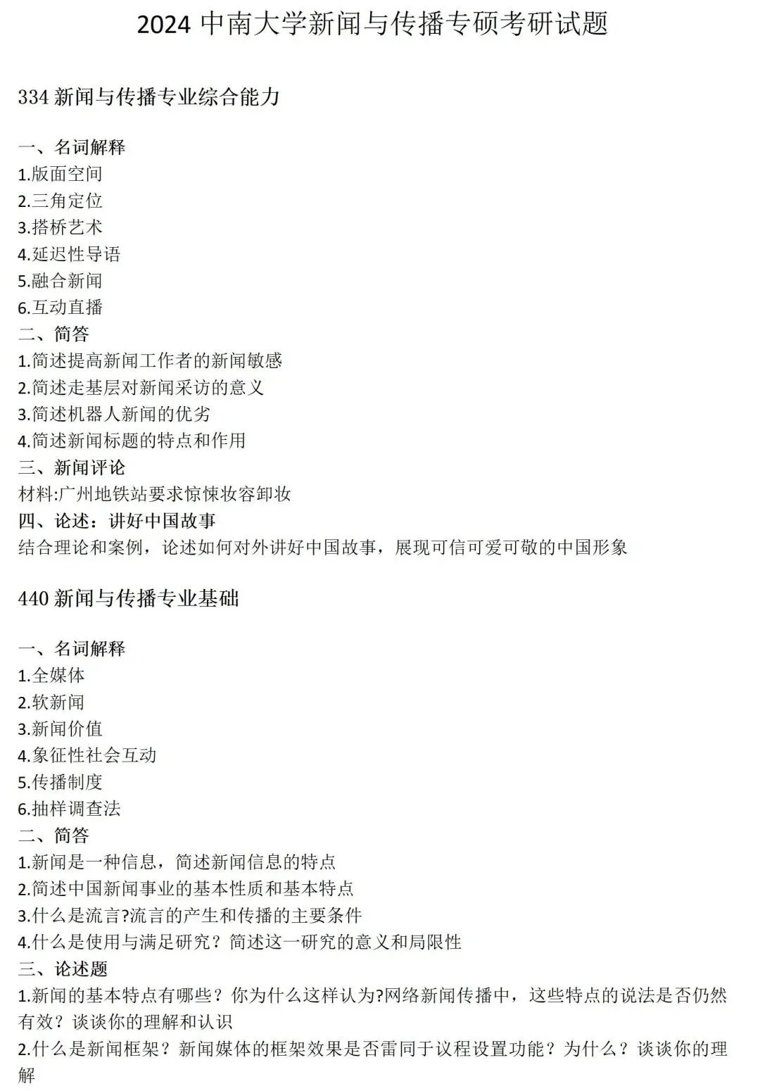 中南大学新闻与传播2007-2025历年考研真题已整理好,可直接获取!