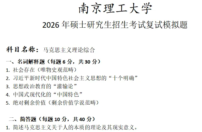 >南京理工大学马克思主义理论综合考研复试真题模拟