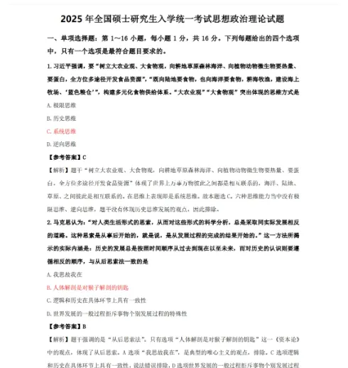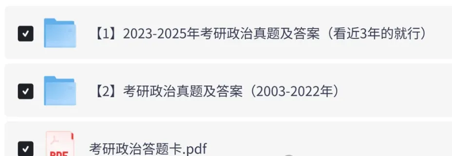 2026年全国硕士研究生招生考试将于12月20日至21日举行,倒计时5天!。为助力广大考生高效备考,精心整理了2003年至2025年的考研政治历年真题试卷及答案解析,PDF电子版,可下载打印!【重要提醒:考研准考证已经开始下载了,大家提前登录研招网下载并打印准考证哈】通过夸克网盘分享的文件:「考研政治真题及答案(2003-2025年)」链接:https://pan.quark.cn/s/f93c53a9ad9b
