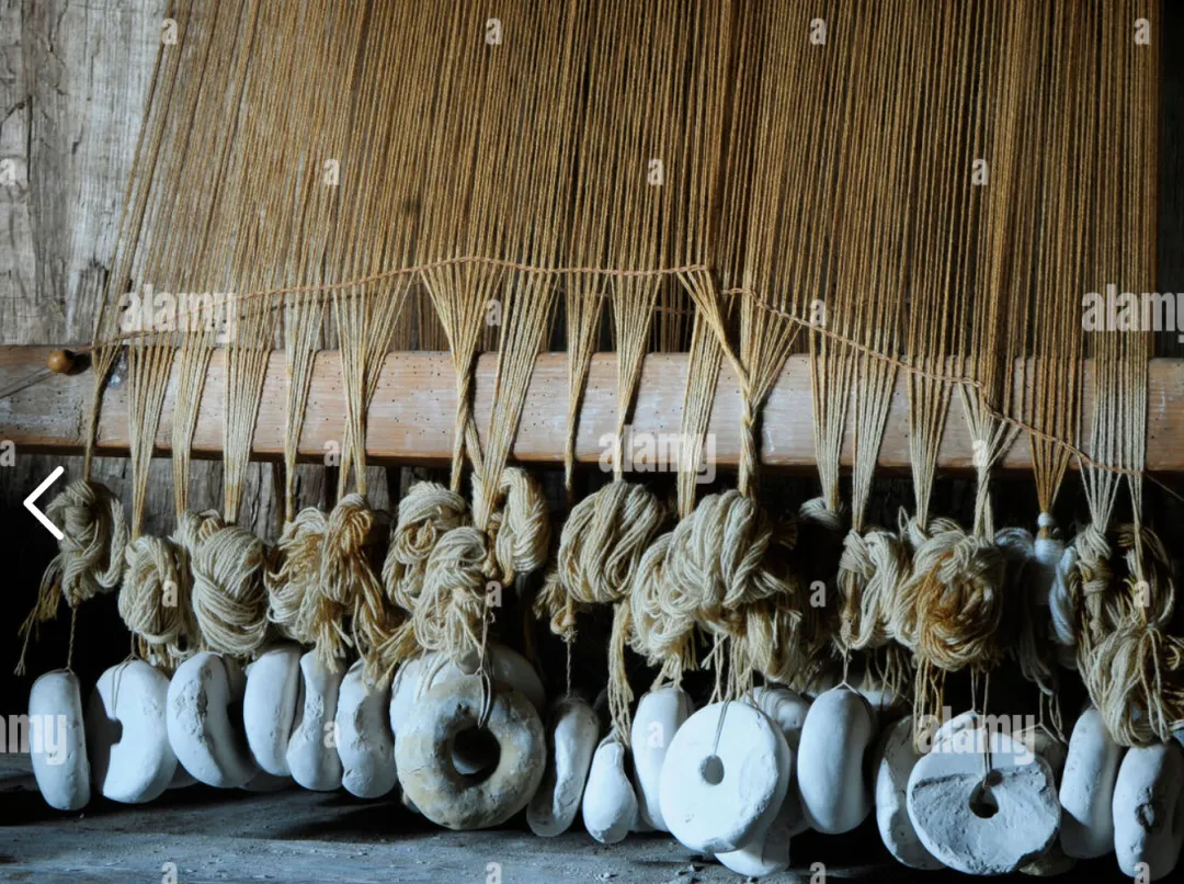 注:文中指米诺斯风格的陶制/石制配重块,用于固定立式织机的经纱,保持张力以顺利织布。