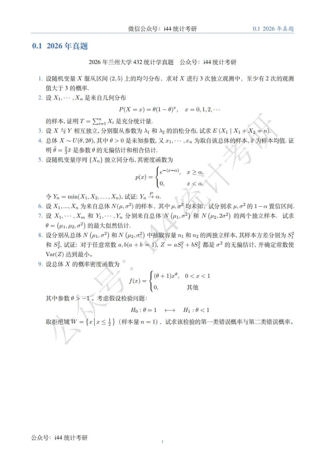 >2026年兰州大学432统计学考研真题