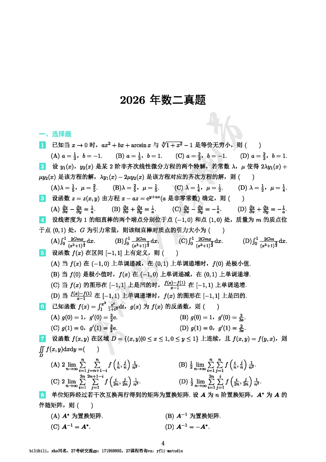 昨天更新了26真题点评的数一点评部分,今天我们来写数二的点评。