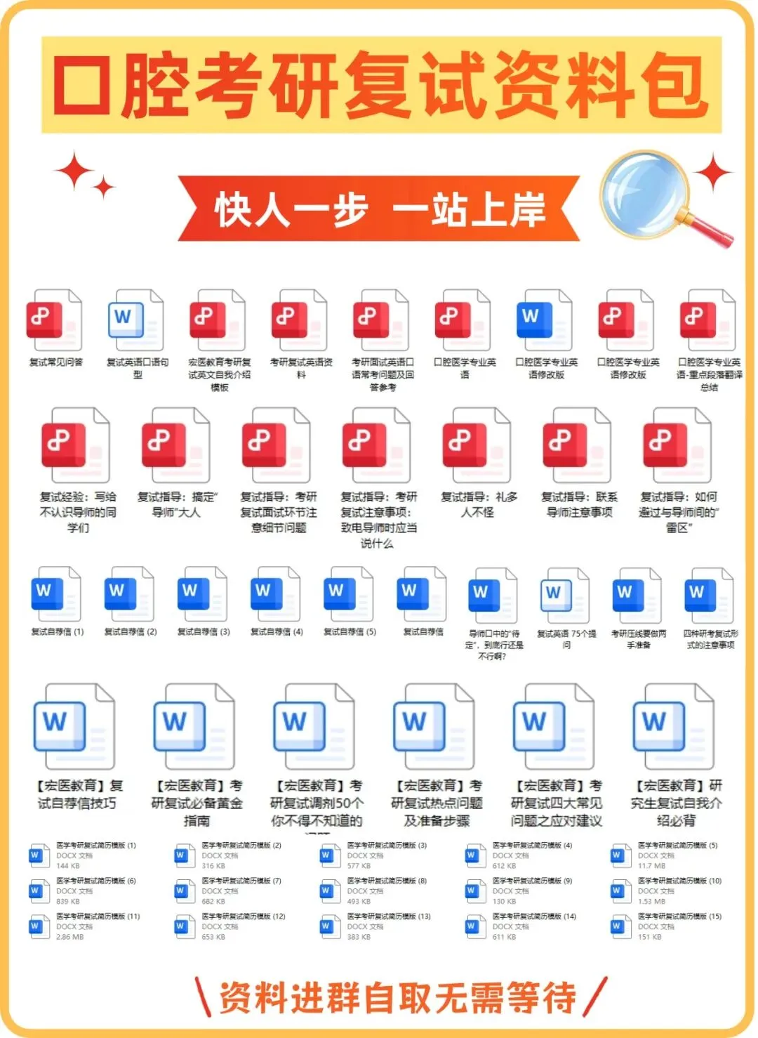口腔考研复试:复试真题、口腔专业英语、常见问答、简历模板自取