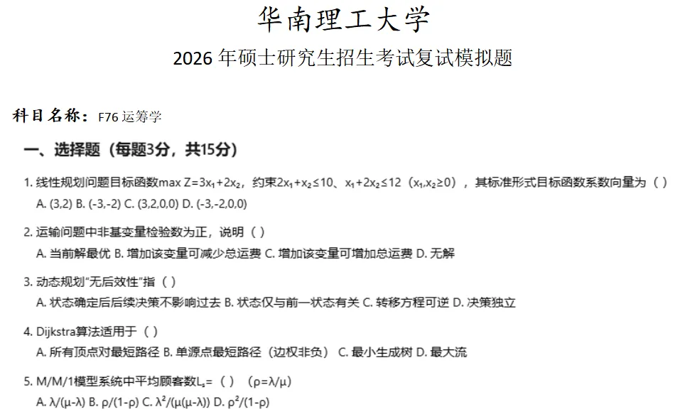 当前位置:首页>考研真题>华南理工大学F76运筹学考研复试真题模拟
