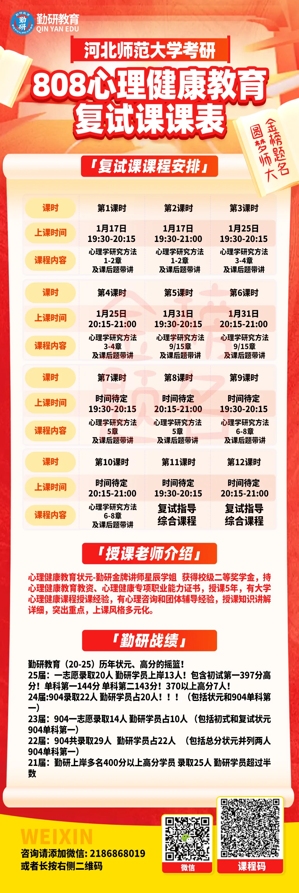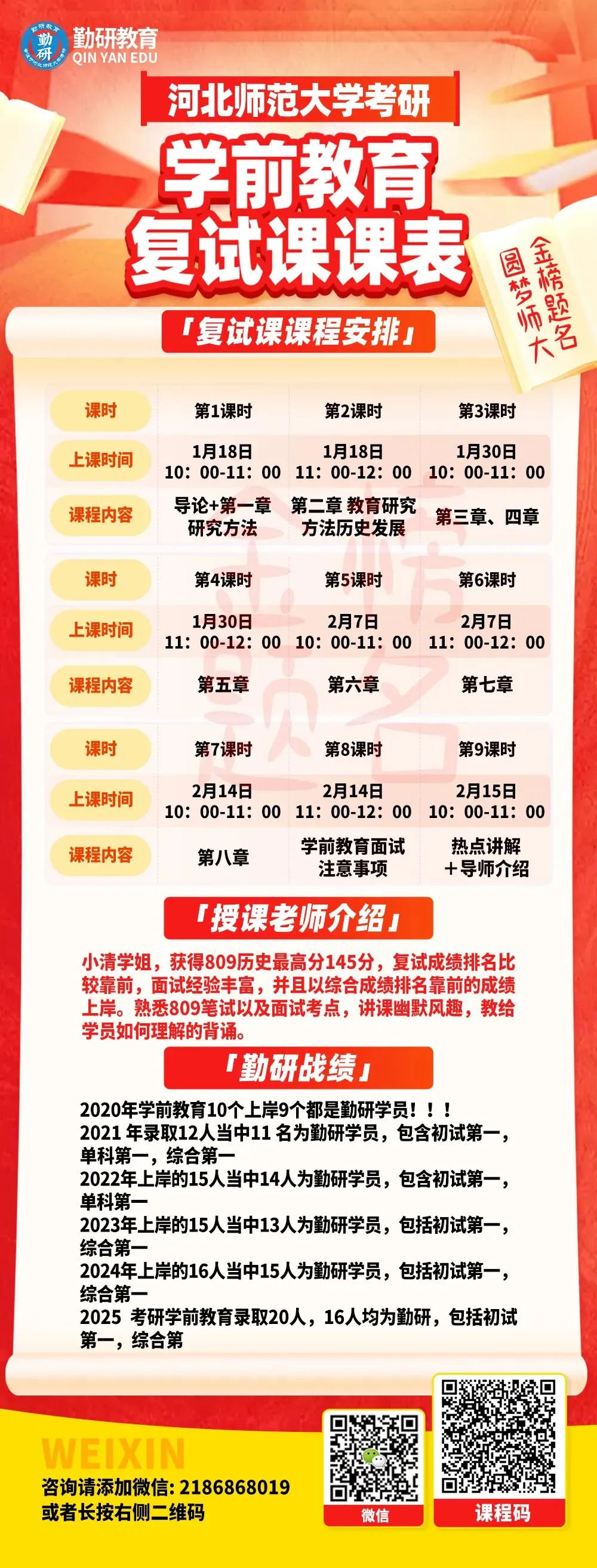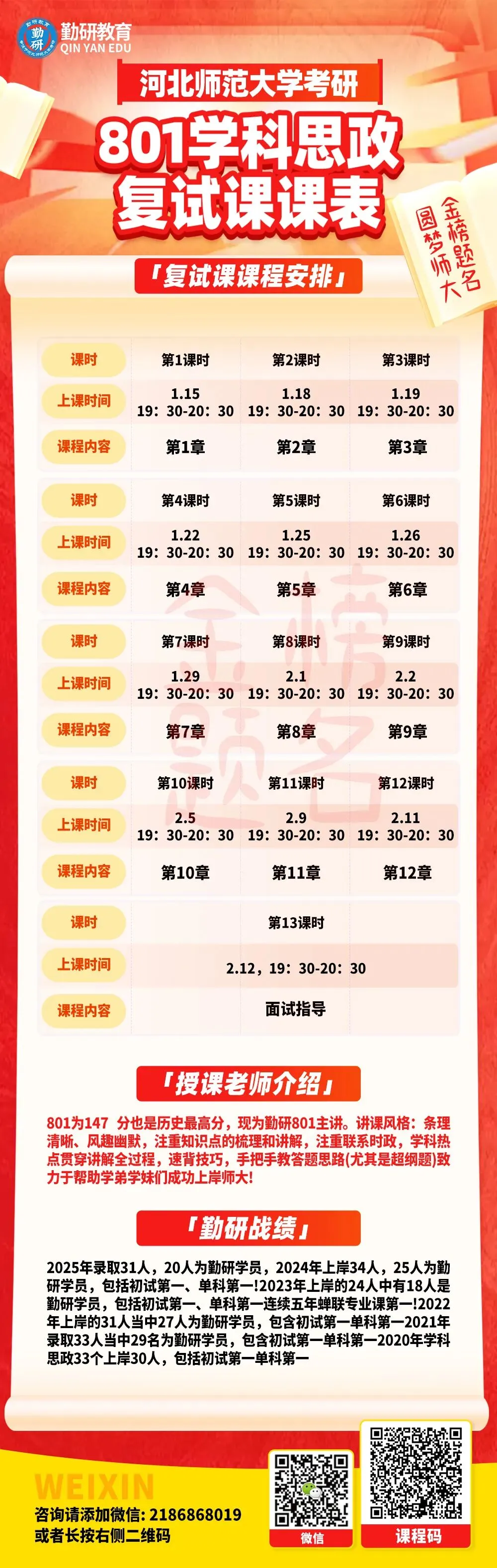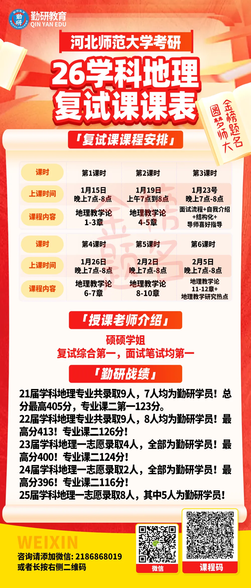 欢迎各位同学联系咨询。预祝各位学弟学妹金榜题名,明年新生队伍中我相信必定会出现你的身影,我们相约勤研,圆梦师大!