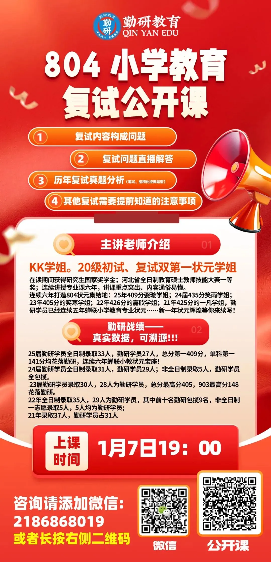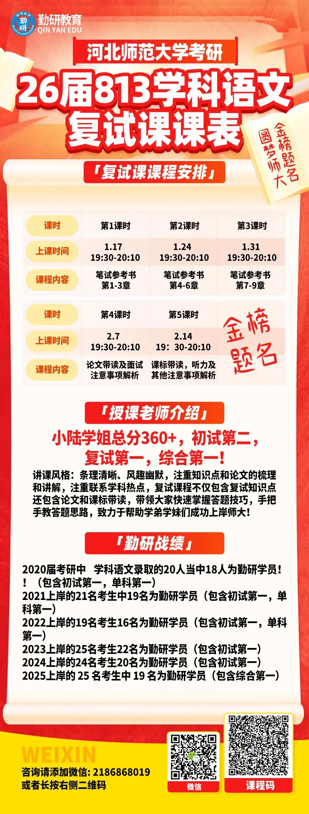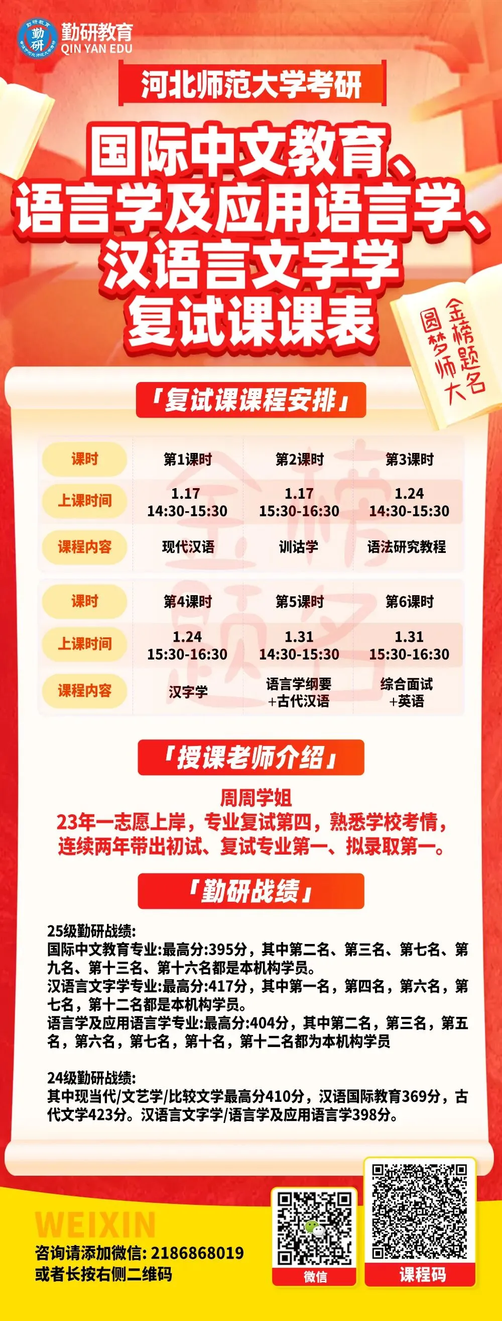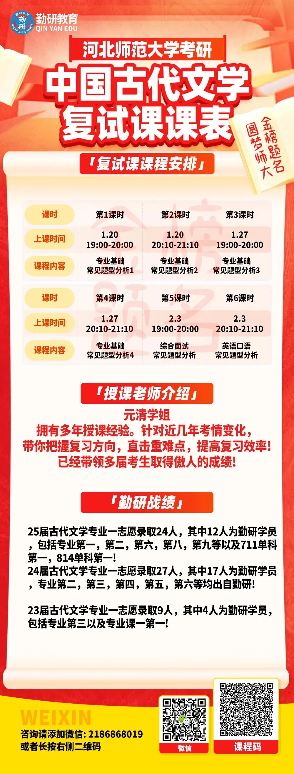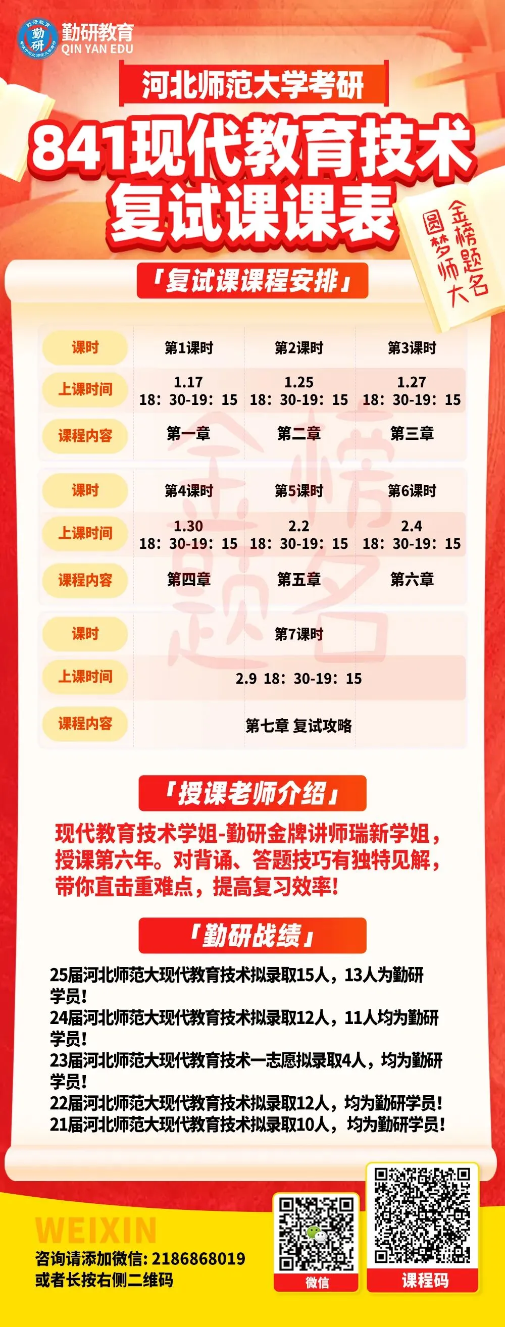 欢迎各位同学联系咨询。预祝各位学弟学妹金榜题名,明年新生队伍中我相信必定会出现你的身影,我们相约勤研,圆梦师大!