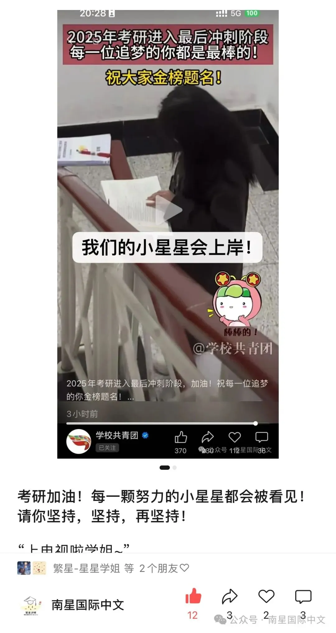 还记得当初分享的这位在楼梯间背书的小星星吗?