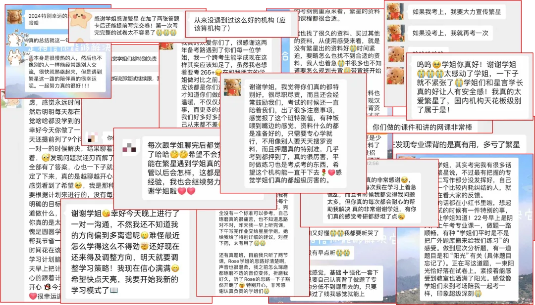 总结:繁星汉硕是一个专业、认真、负责、有爱的机构,广外汉硕这方面无人能敌,学姐们都很好,对待我们不仅仅是像市面上的学生和老师的关系,她们更像朋友,在上课时认真授课,下课负责答疑,平时会在群里关心、鼓励我们。考试前会提示哪里需要注意,考试注意事项,怎么答题几乎你能想到的想不到的学姐们都会告诉我们,如果考广外汉硕,报这个班真的没错,你不需要思考怎么学,学哪里,因为学姐所有的都会告诉你,欢迎报考繁星汉硕一个巨专业、温暖、专业的机构。