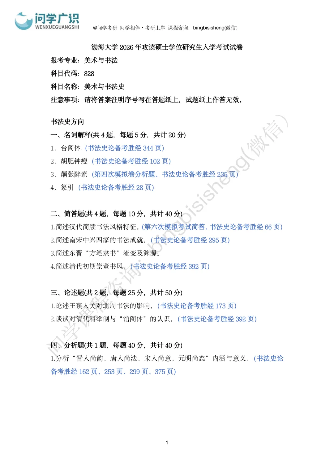 为了帮助更多学子择校备考,问学考研将渤海大学2026年考研828美术与书法史、626美术与书法理论回忆真题整理分享