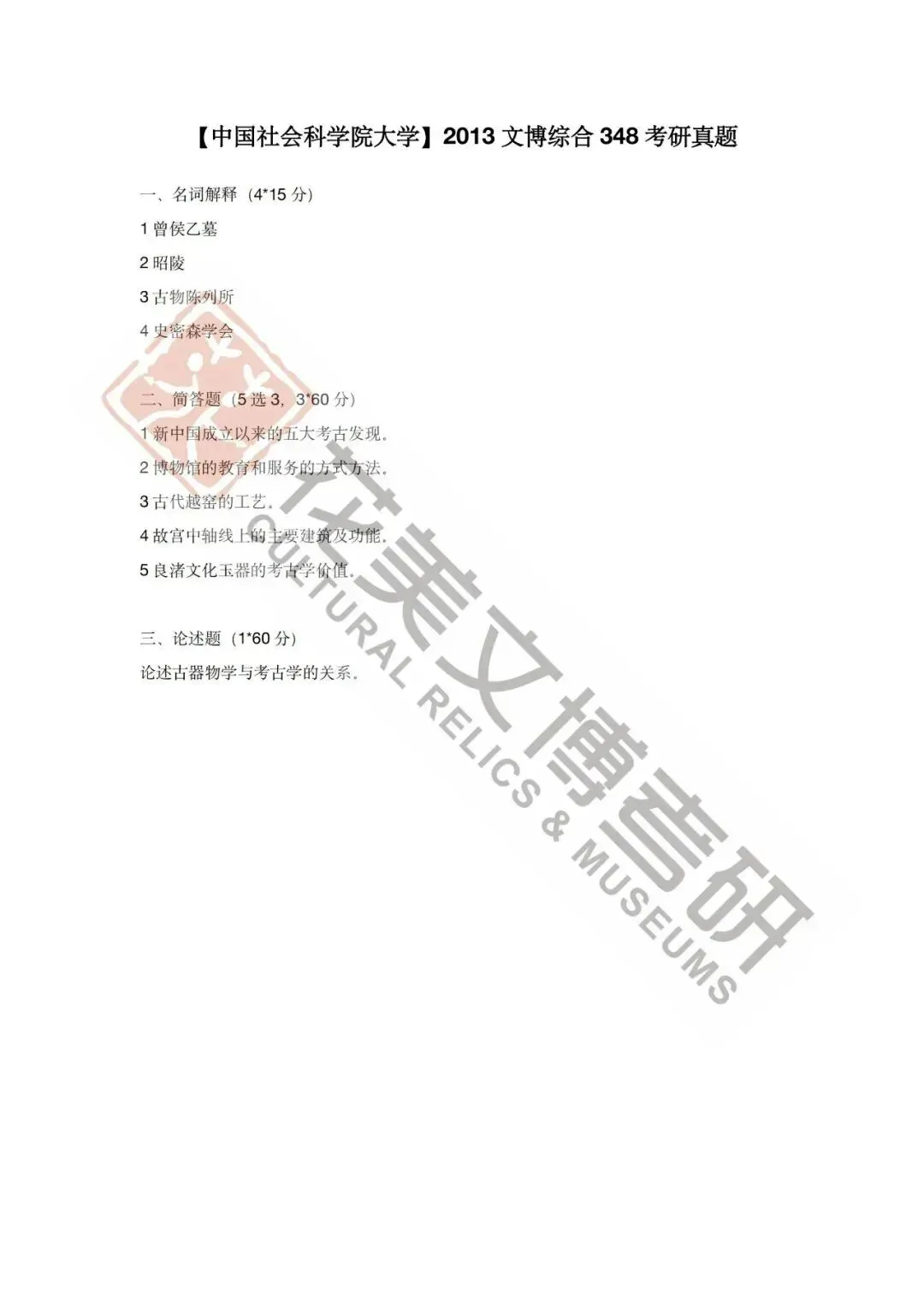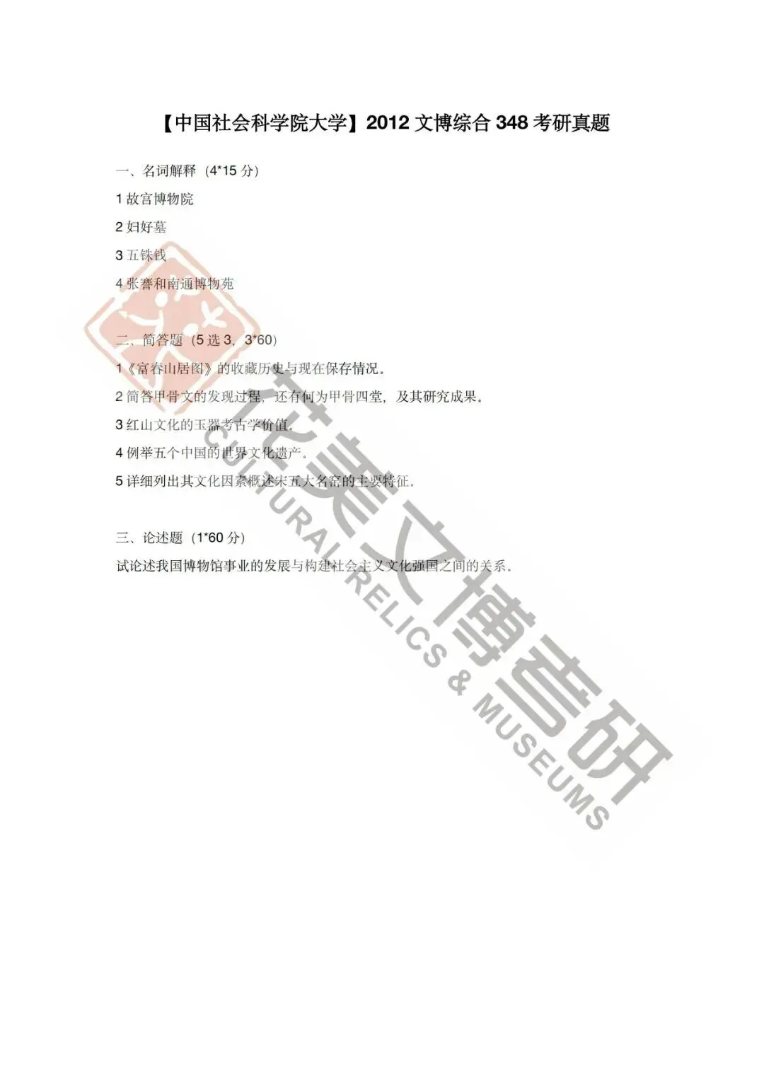 >【中国社会科学院大学】文博考研历年真题2012~2026