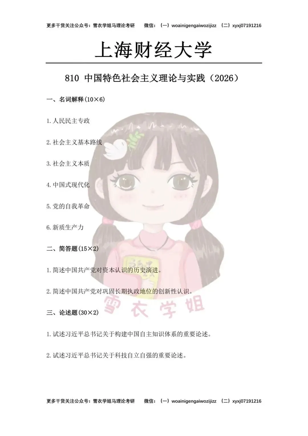 今年两题论述题都考了习总书记的重要论述,明年准备报考上海财经大学的宝贝们一定要系统研读习总书记的重要论述,分专题进行复习。