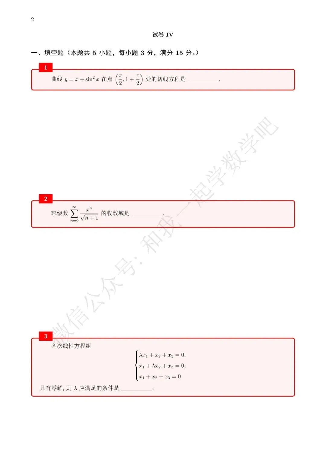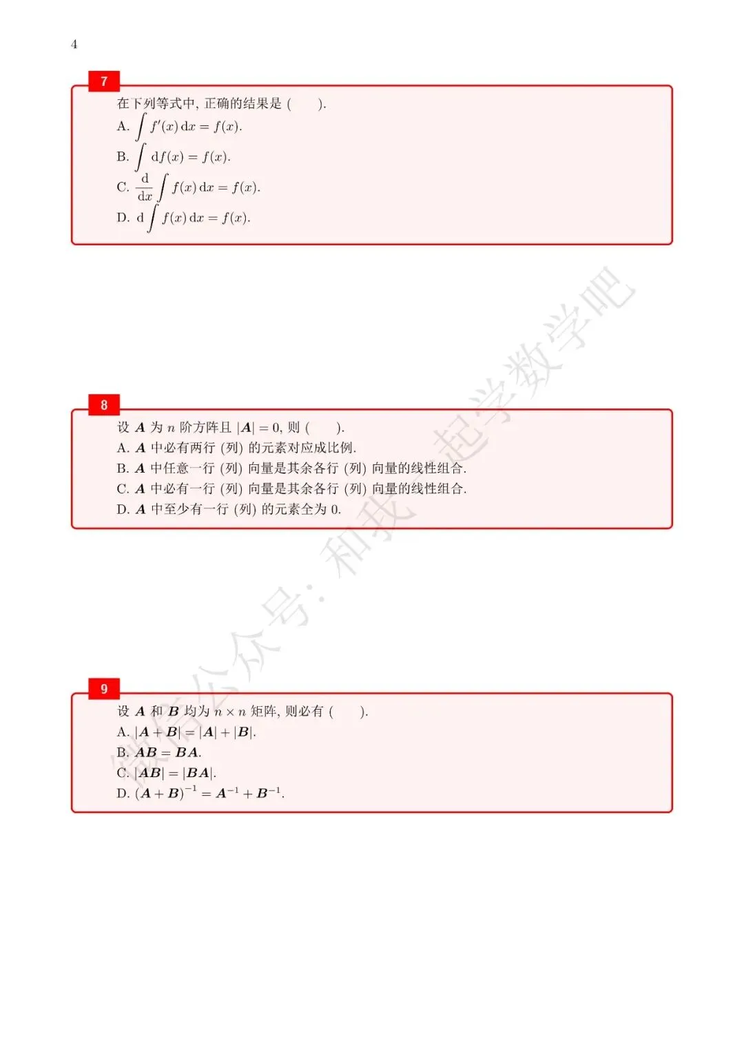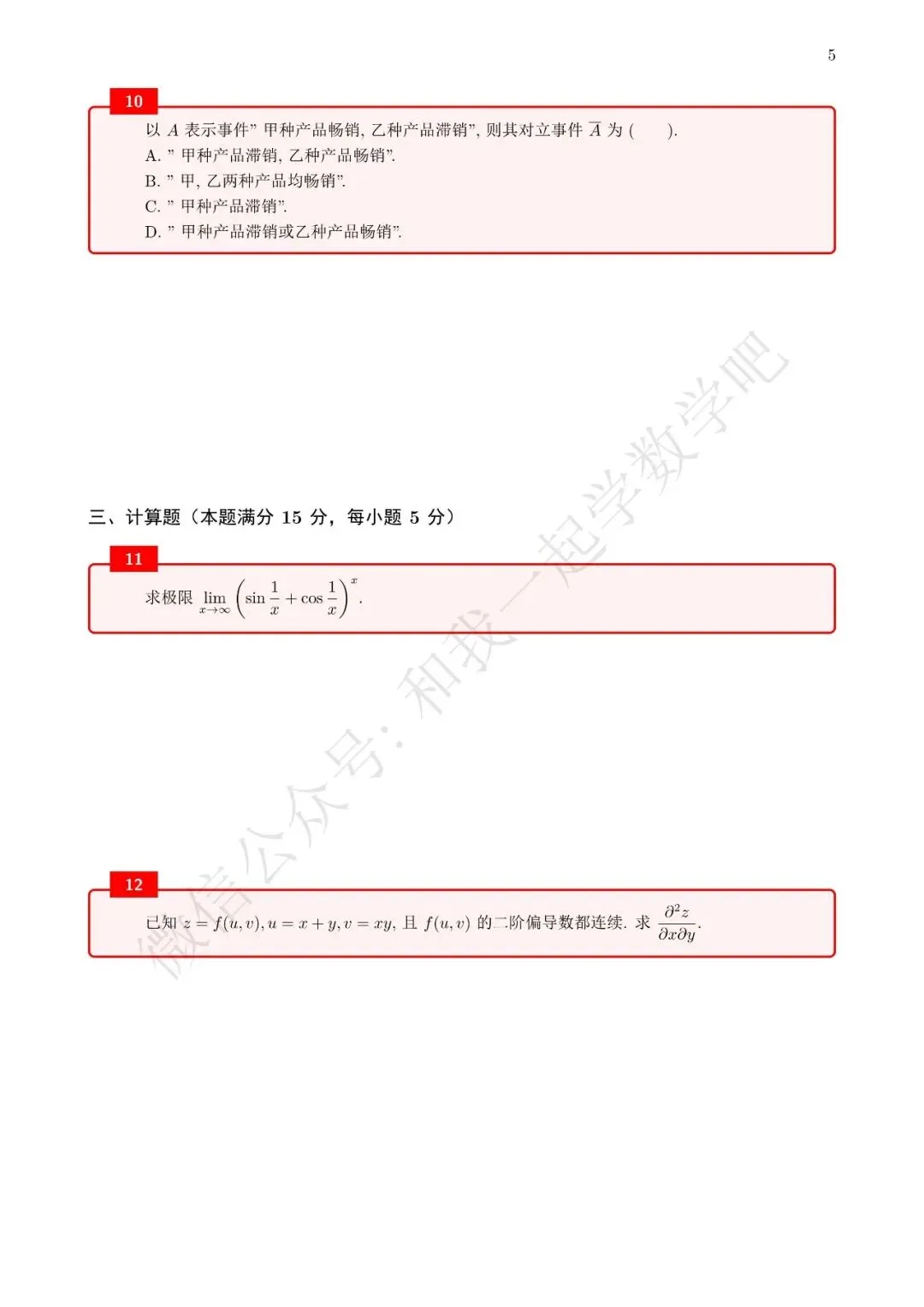 为了方便各位小伙伴们刷题,我重新排版了89年数三的真题,在每道题下面都增加了空白,方便大家写答案,记录相关知识点。以下是图片,完整版pdf文件后台回复"89考研数三"免费领取。
