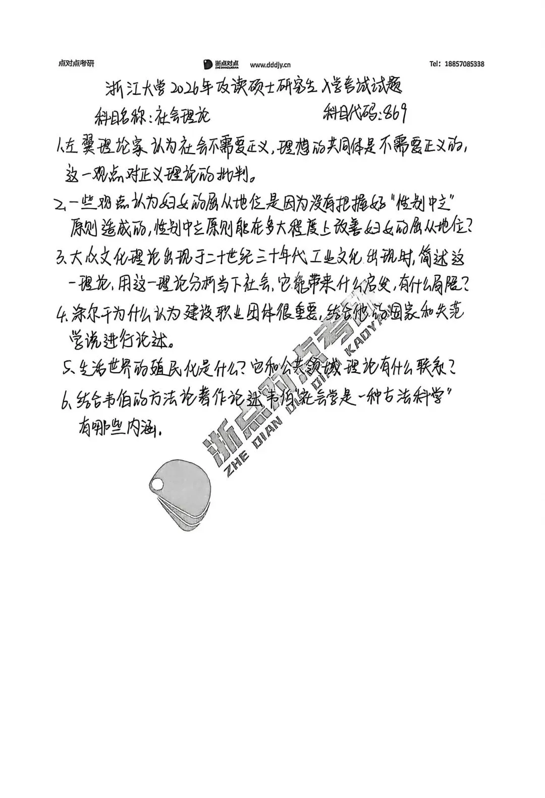 浙江大学2026考研869社会理论真题回忆