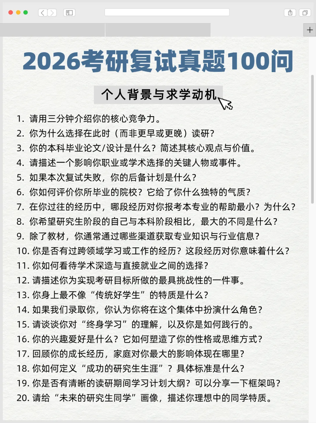 当前位置:首页>考研真题>【收藏贴】2026考研复试真题100问