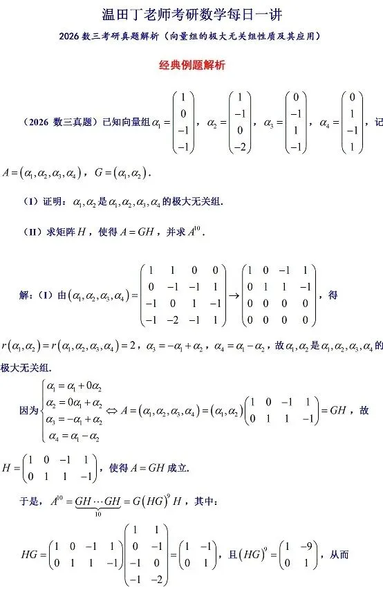 >2026数三考研真题解析(向量组的极大无关组性质及其应用)