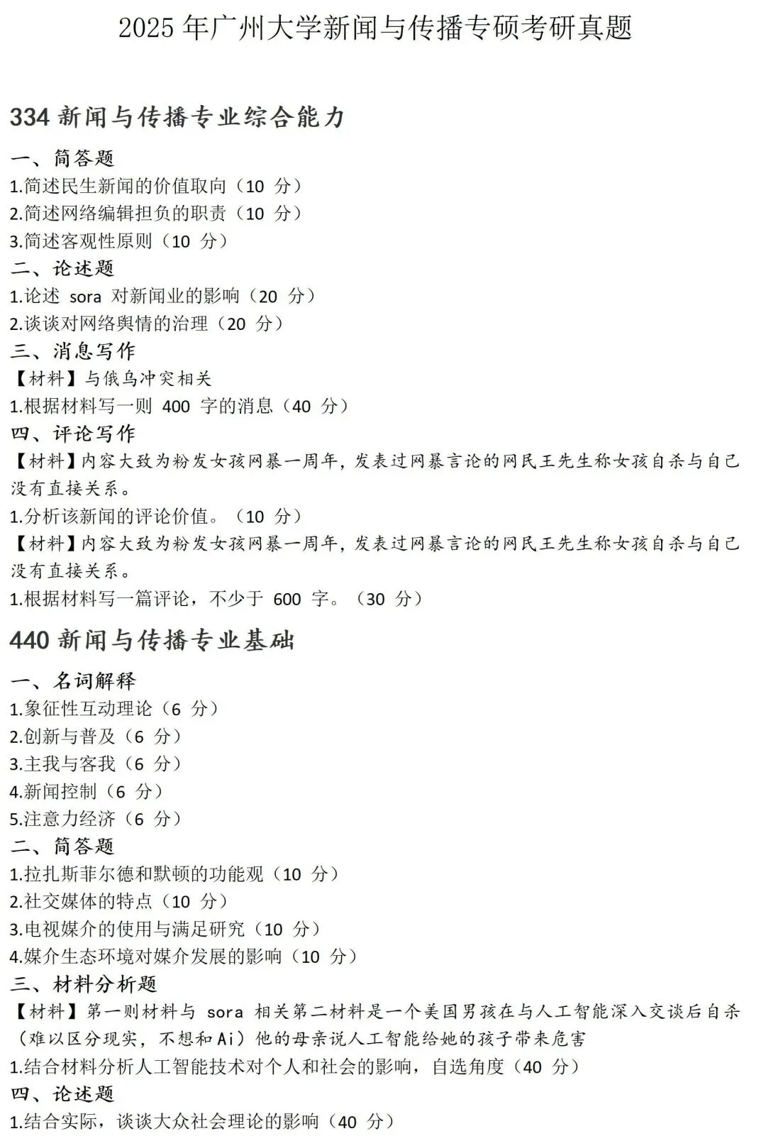 广州大学新闻与传播考研真题2024