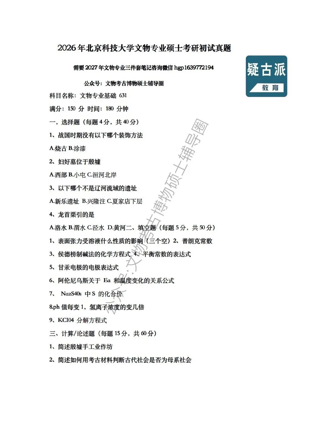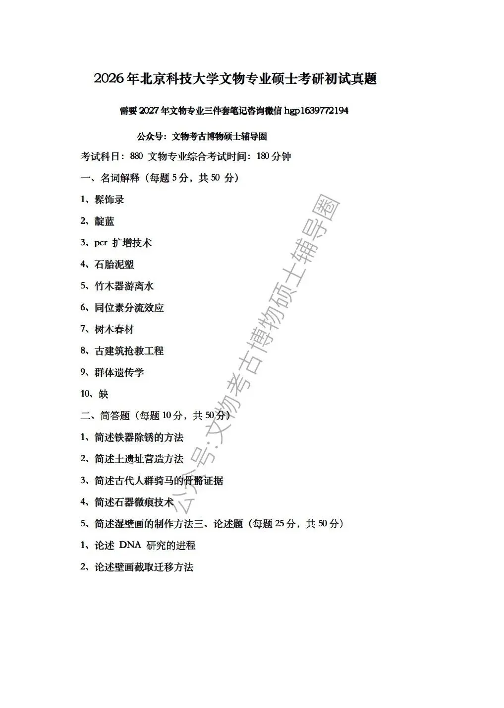 >北京科技大学历年文物考研真题汇总