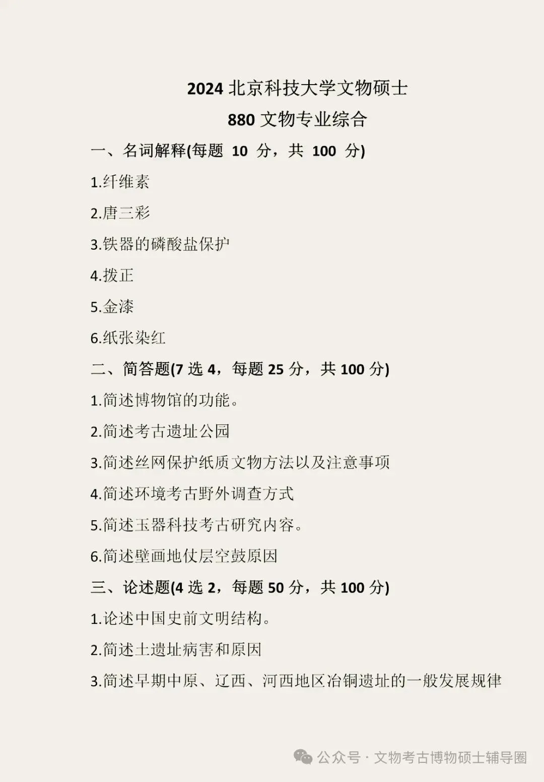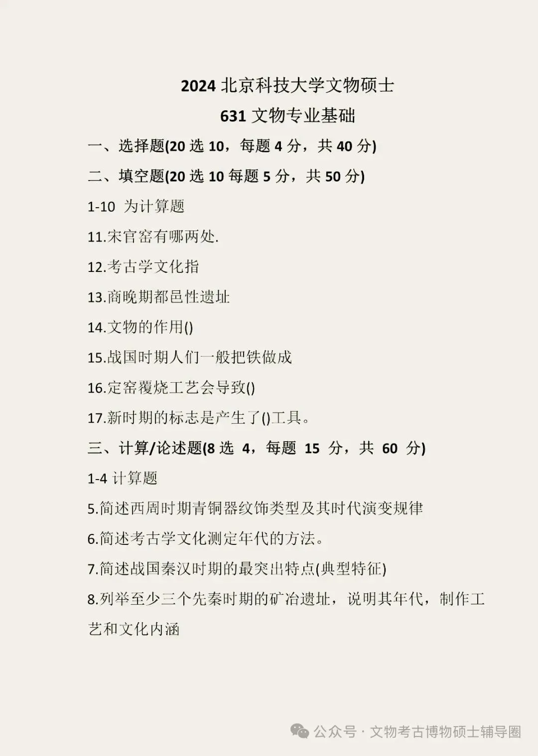 北京科技大学历年文物考研真题汇总