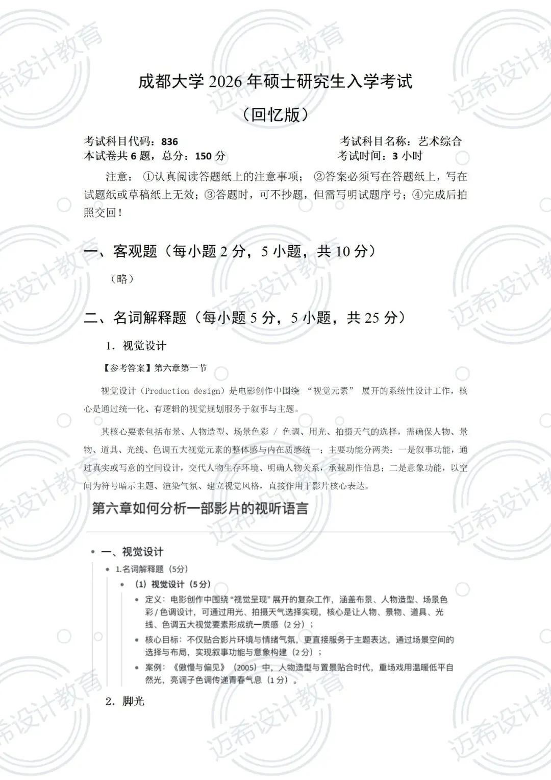 2026考研836艺术综合真题答案