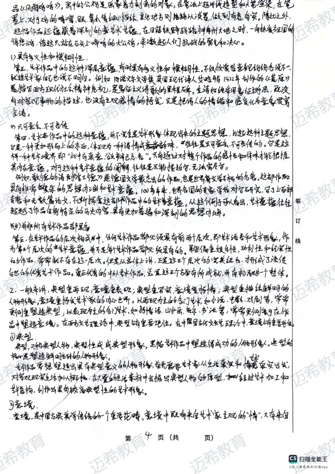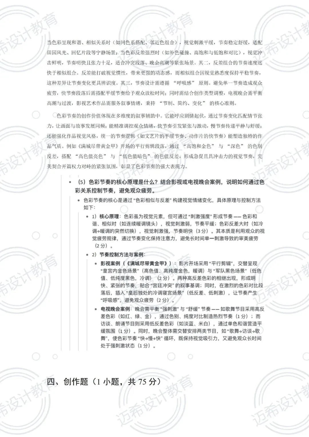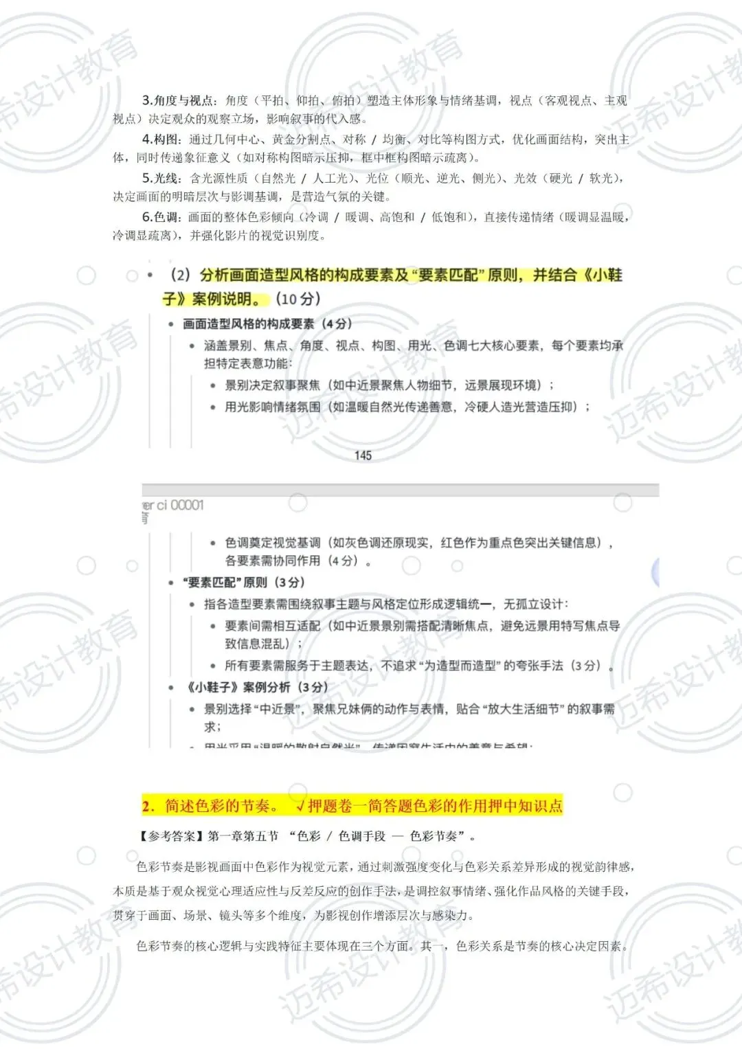 简答题:“色彩”“画面造型” 是核心,要会延伸知识点(比如色彩的作用→节奏→情感表达)