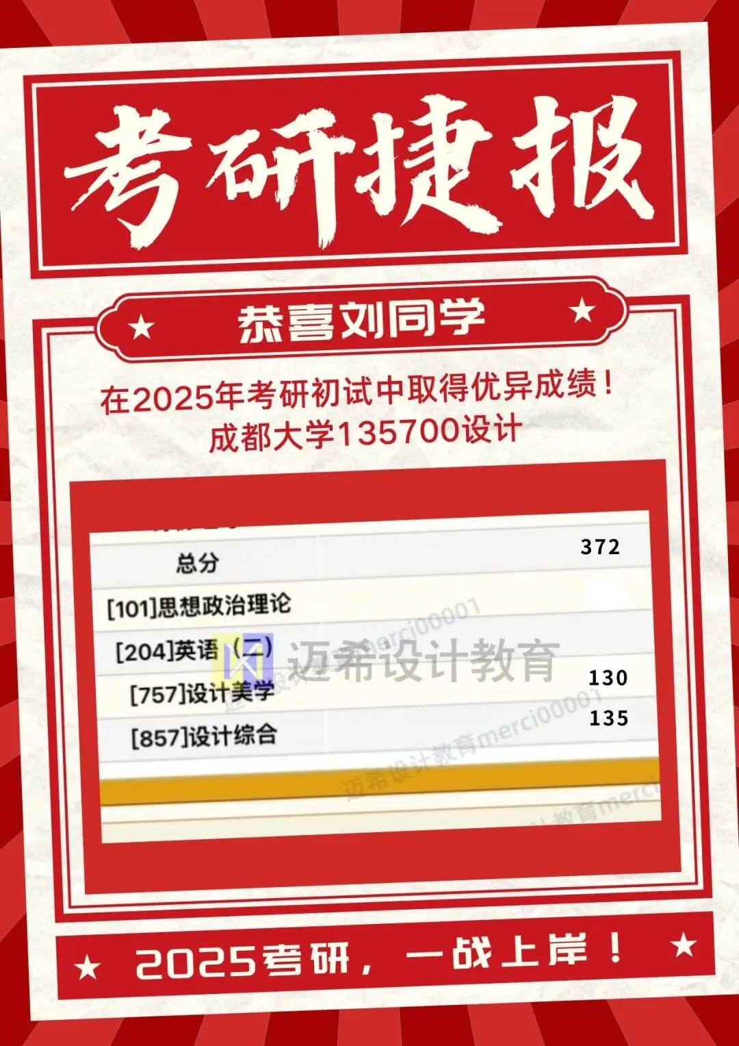 迈希设计教育隶属于成都迈希教育科技有限公司,是一所专业从事艺术类考研的优质的教育机构,拥有一支爱岗敬业、团结奋进、善于学习勇于探索的教师队伍,不断的推出更新、更优质的教学和服务。自成立以来,迈希始终以“用心做教育”为宗旨,谨守诚信办学的行为准则,始终把学生利益放在首位,助力各位考研学子圆梦名校!深受广大学子信赖。