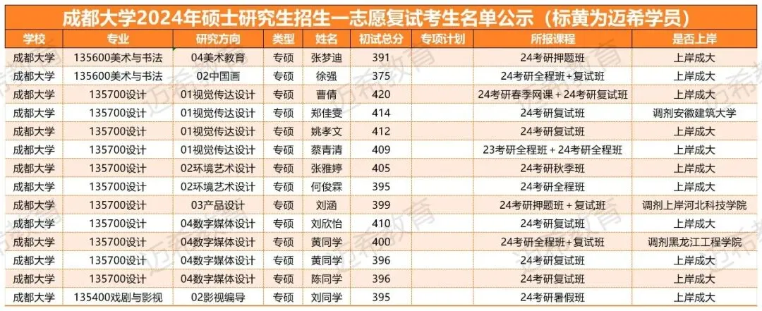 一分耕耘一分收获,迈希教育共培养了51人上岸成都大学研究生,11人一志愿报考成都大学未能上岸但是调剂上岸了其他的学校。