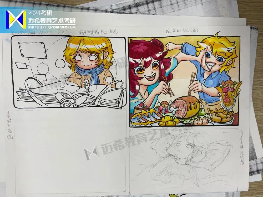 强化专项技能:手绘 / 创作冲刺课要针对考试要求进行强化训练,动画手绘课多练习真题风格的手绘作品;编导 / 新媒体创作课多写真题类型的剧本或脚本,不断优化作品质量。