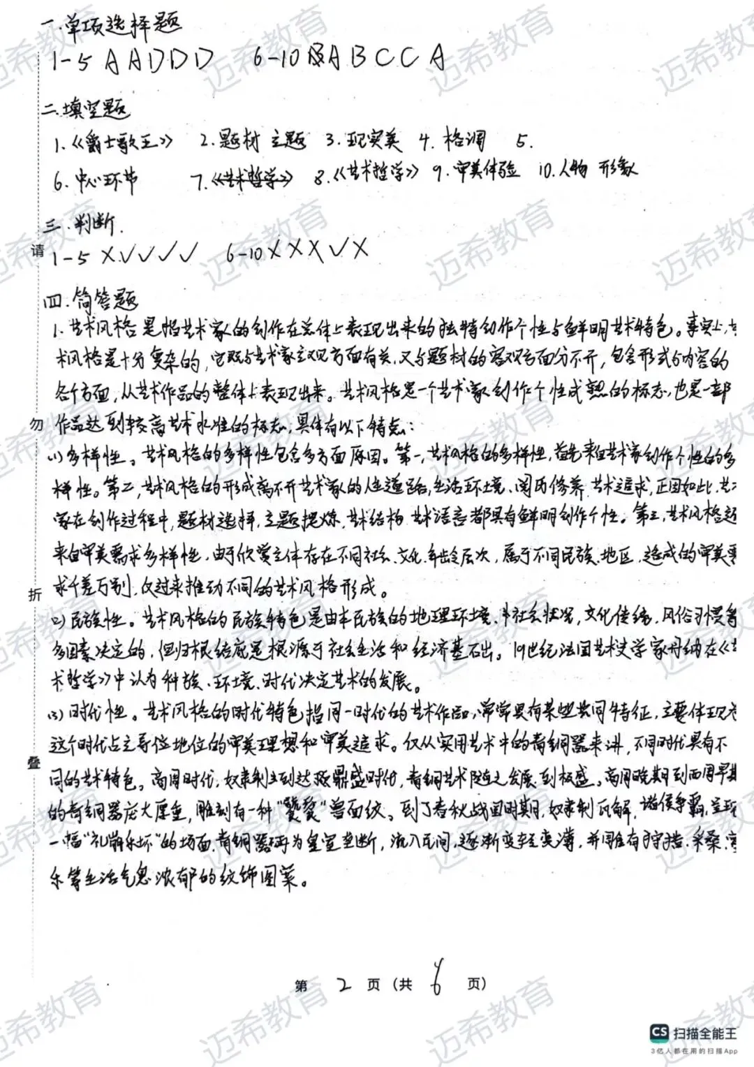 ✅ 简答题 1 题押中知识点:“色彩的节奏” 对应押题卷 “色彩的作用”,换个问法就能套思路~