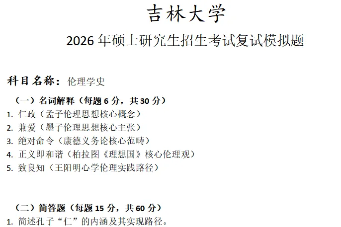吉林大学伦理学史考研复试真题模拟含答案